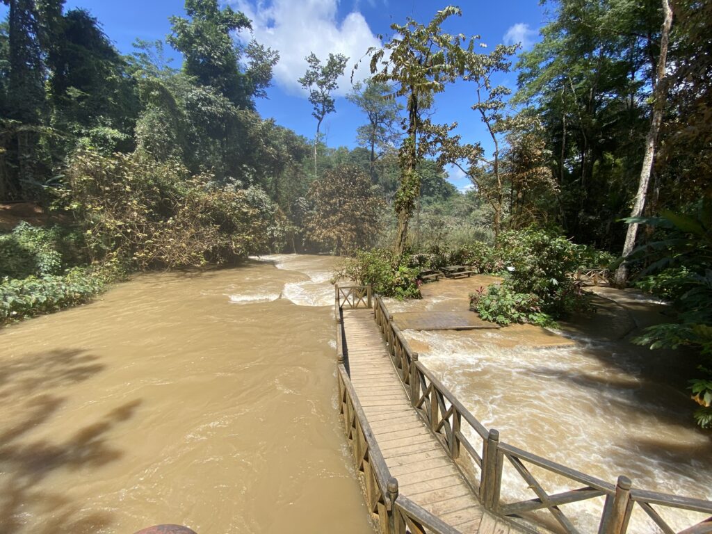 Pensavo di arrivare qui, farmi una nuotata e prendere il sole, invece mi sono trovato in una situazione totalmente diversa, dato che l’acqua era abbastanza fangosa a causa della stagione delle piogge che sta avvenendo, inoltre la corrente era abbastanza forte.. in compenso queste cascate offrono uno spettacolo molto piacevole.