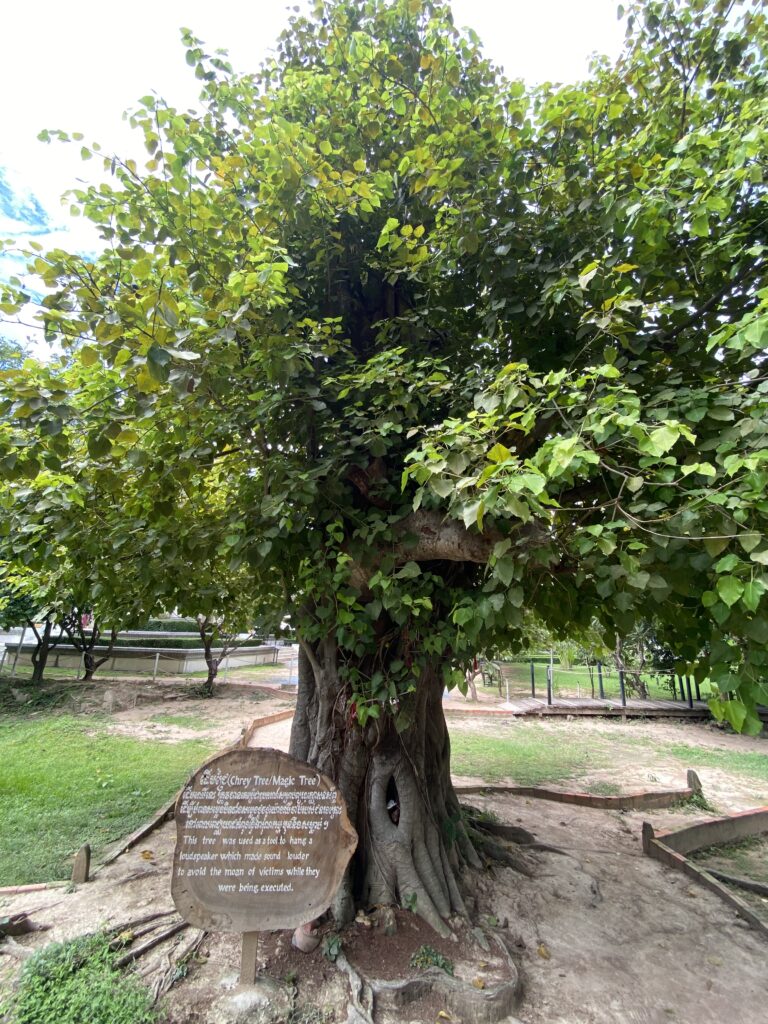 Proseguiamo la visita e troveremo altre fosse comuni, e un albero che mi ha particolarmente fatto effetto.. non se se leggete il cartello ma dice che era il ciliegio usato per appendere un altoparlante che copriva i lamenti dei detenuti che venivano torturati.