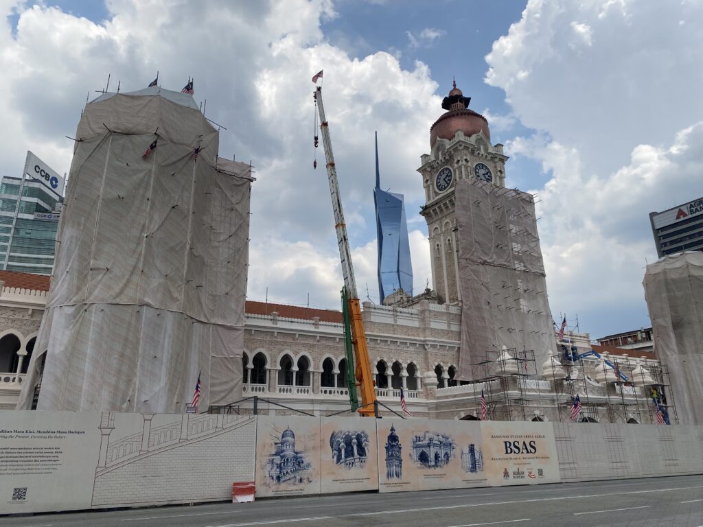 Camminiamo una ventina di minuti ed arriviamo in questa piazza verde con a fianco il famoso edificio del sultano Abdul Samad, il quale ahimè non ho potuto vedere perché era in ristrutturazione.