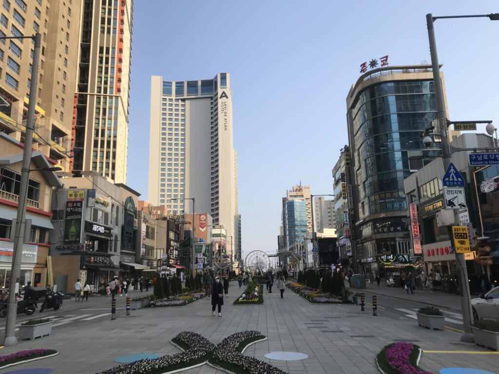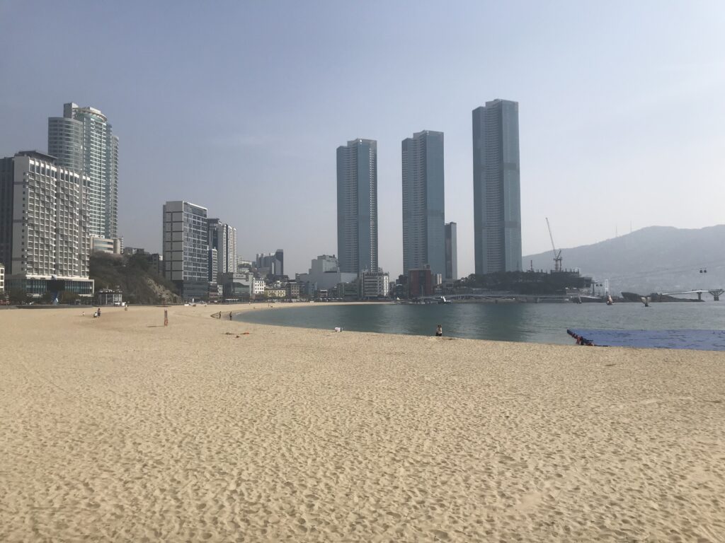 Haeundae è la spiaggia in lontananza quando si arriva con la nave, coi suoi 3 grattacieli caratteristici… anche questa una delle spiagge iconiche di Busan e devo dire che farsi un giro per il quartiere è davvero piacevole, si trovano tanti negozi tipici e bancarelle,l’omonimo mercato tradizionale, e proprio a due passi si può fare una camminata sulla famosa Via del Cinema.