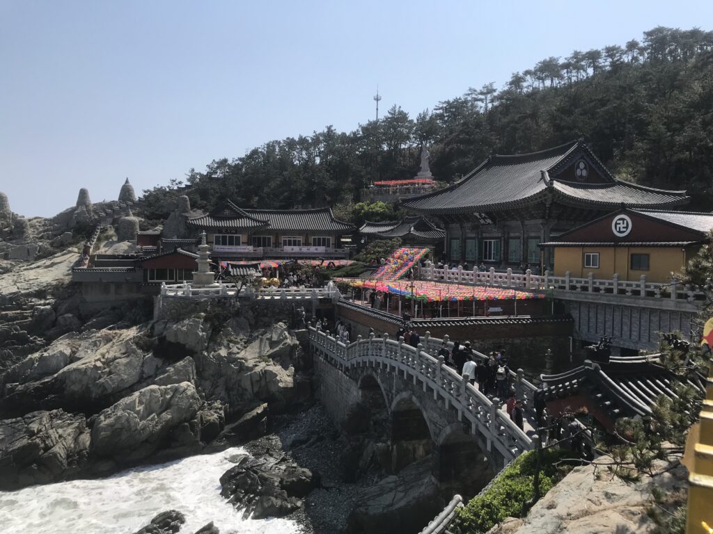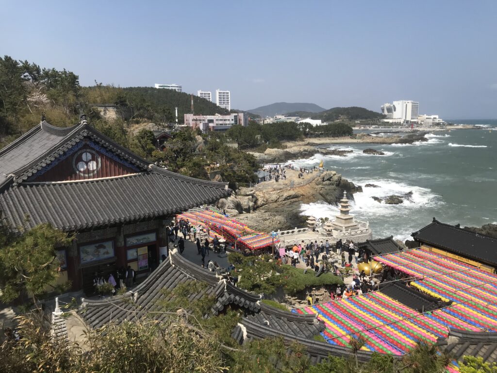 Un pochino fuori dal business center di Busan si trova questo tempio buddista sul mare che è davvero uno spettacolo a cielo aperto.