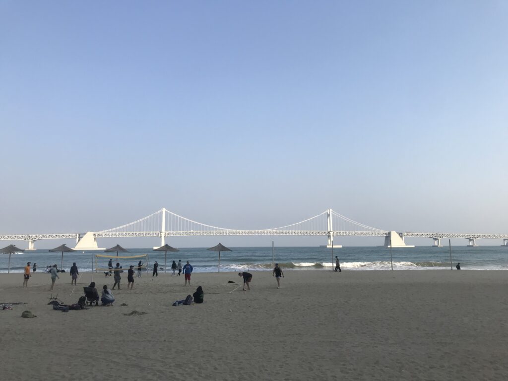 Anche questa altra spiaggia importante, Gwangalli, che pullula con i suoi ristorantini e negozi sulla strada a 2 passi dal mare, ma famosa soprattutto per l’omonimo ponte che attraversa il mare e che si illumina di notte.