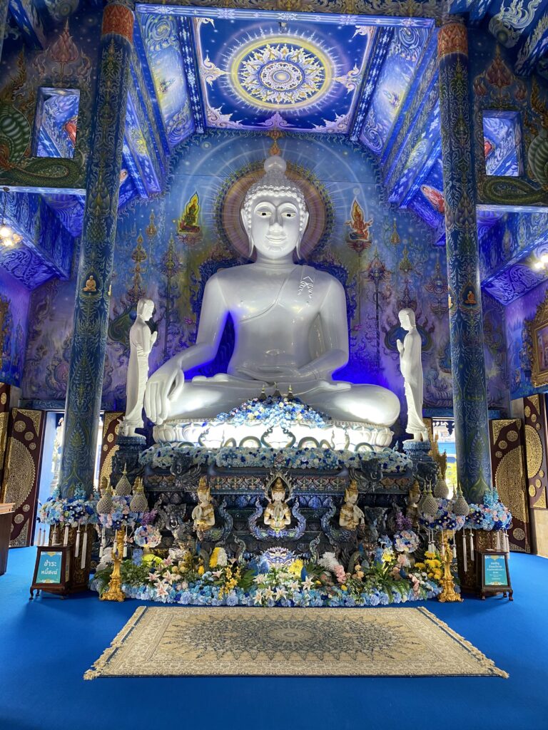 Anche questo presenta elementi davvero unici, quali le varie statue all’ingresso e all’uscita, per non parlare dell’interno, in cui stavolta era possibile scattare foto, con questa statua del Buddha avvolta da uno sfondo blu mistico.. un tempio spettacolare che non potete perdere se venite a visitare questa zona della Thailandia.