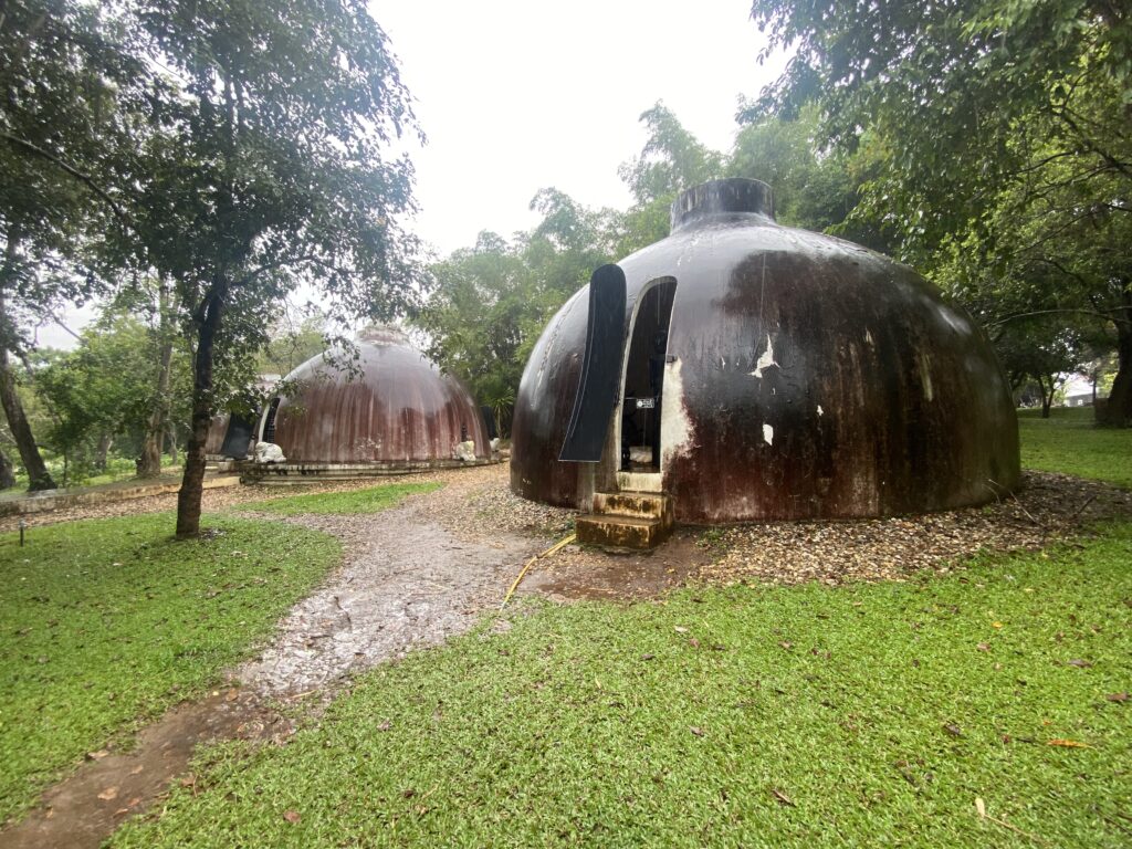 Al di là delle varie opere, la bellezza di questo posto sta anche nel giardino, nel quale si possono trovare altrettanti prodotti artistici, come ad esempio le casette insonorizzate che vedete in foto.. anche questo un luogo imperdibile se venite a visitare Chiang Rai.
