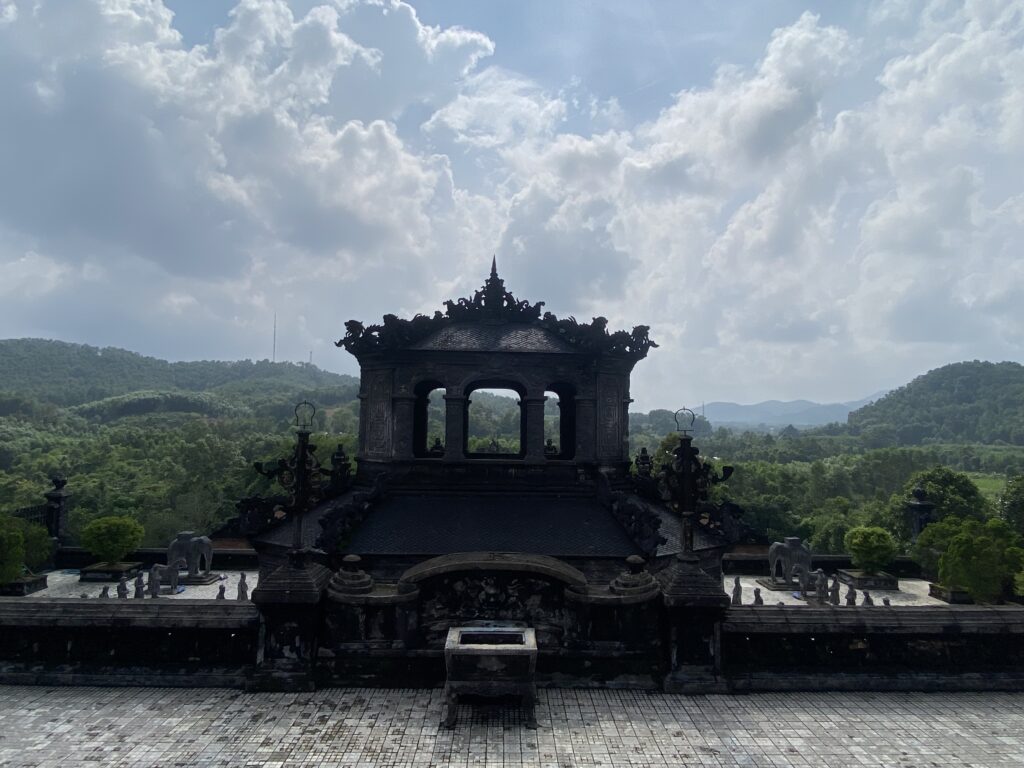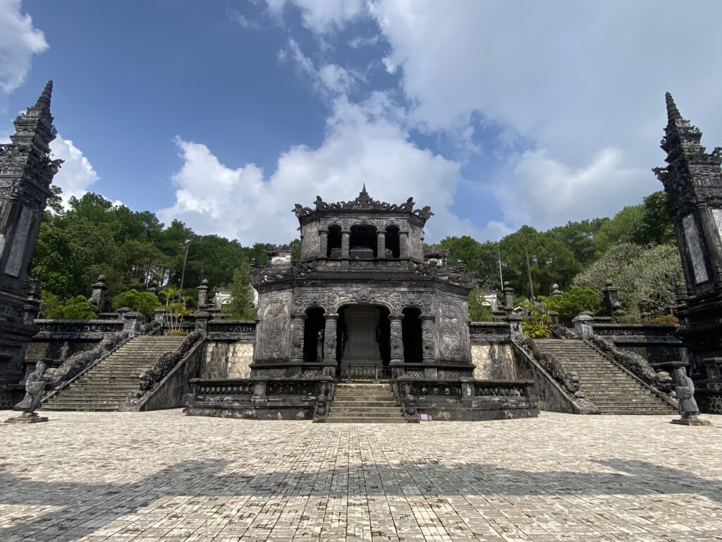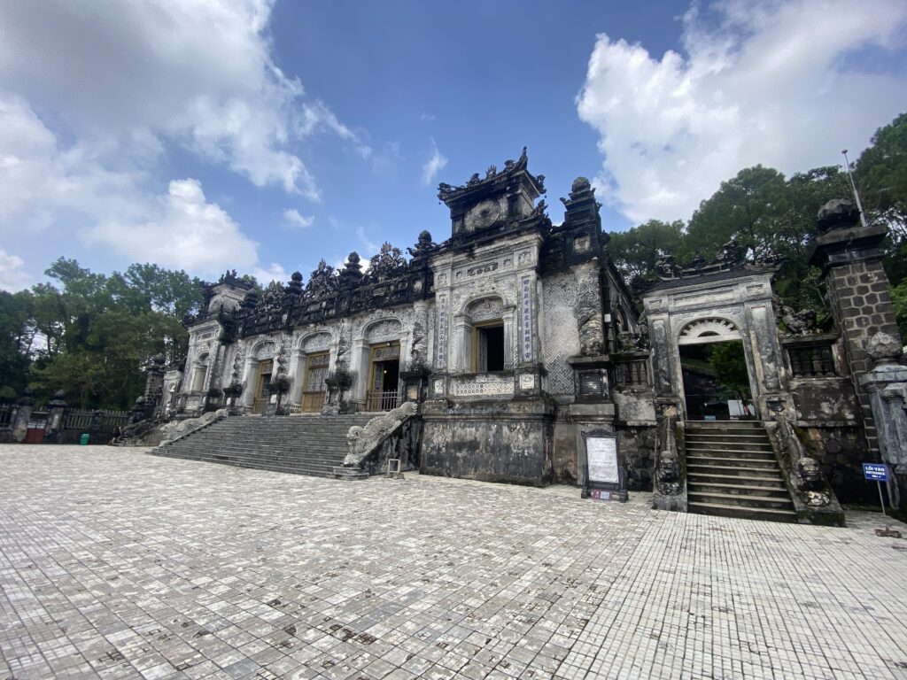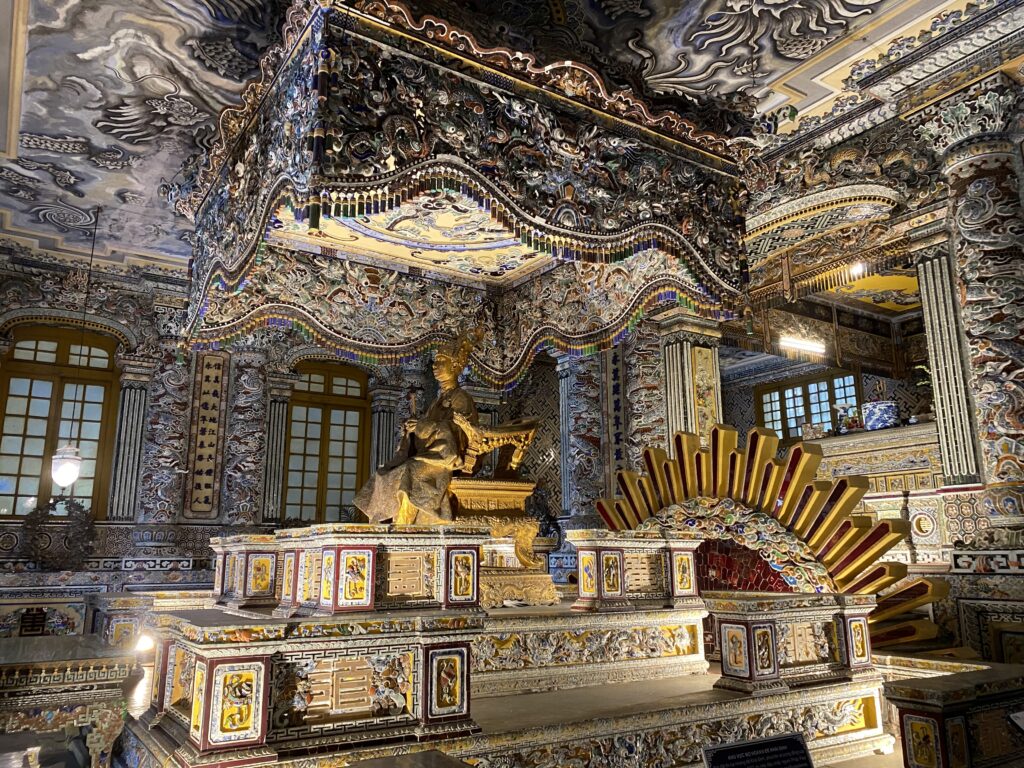 Come detto siamo nella città delle tombe imperiali, e di certo non potevamo non visitarne almeno un paio, cominciando da quella più imponente, la tomba di Khai Dinh, la quale salta subito all’occhio per la sua architettura importante in stile misto tradizionale vietnamita con dettagli europei: basti vedere la sala interna composta da ceramiche e porcellane tutte colorate tipiche di uno stile occidentale.