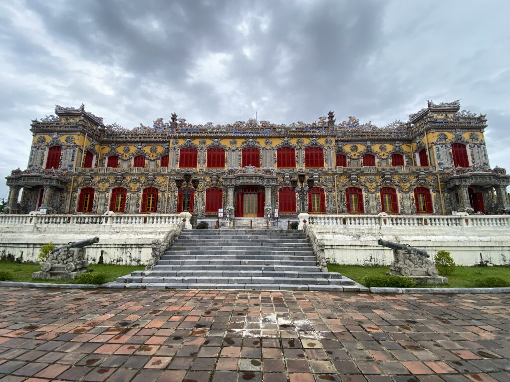 Proseguiamo la nostra camminata passando per vari edifici, tra cui il teatro, aree di studio o di relax, altre sale rifatte recentemente in cui si espongono opere tipiche vietnamite, per poi arrivare al Palazzo Kien Trung, la residenza degli ultimi due imperatori e forse l’edificio che mi ha colpito di più in tutta la struttura dati i suoi colori e i suoi interni in cui non potevano fare foto.