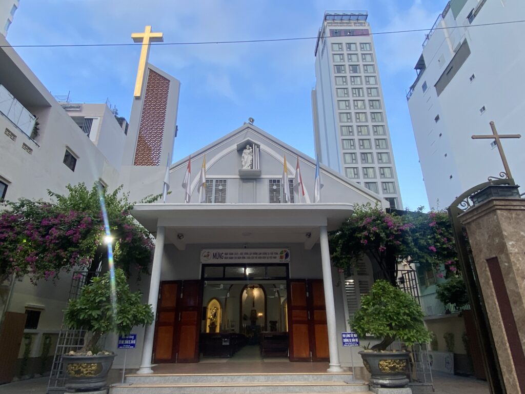 Procediamo con una delle tante chiese cattoliche, questa forse la più iconica della città, la Cattedrale di Nha Trang, detta anche Mountain Church proprio perché si trova su una collinetta.