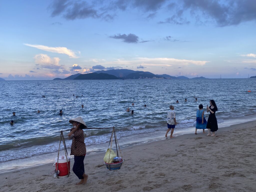È vero che la città è molto turistica, e che nella zona della spiaggia principale non sembra neanche di essere in Vietnam, in compenso è un buon posto se vogliamo rilassarsi un paio di giorni e godersi la spiaggia, anche se l’acqua non è tra le più pulite, niente è meglio di godersi l’atmosfera di mare sdraiati sotto una palma.. saluti da un durian gustato direttamente sulla spiaggia!