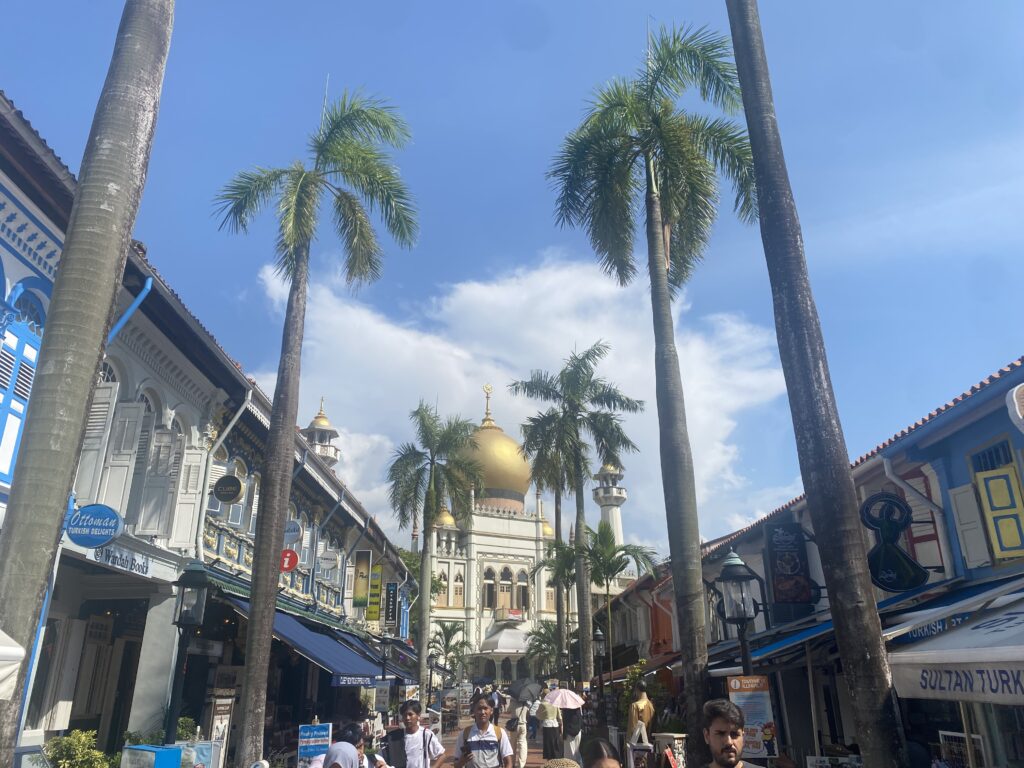 Adesso è arrivato il momento di dirigersi verso Kampong Glam, il quartiere arabo di Singapore. Qui non potete assolutamente perdere la Moschea del Sultano e il relativo palazzo, imponente con la sua cupola d’oro, la quale finisce proprio su Arab Street, la via più frizzante e trafficata del quartiere, piena di casette blu che vi si affacciano e colma di ristorantini e bar tipici.