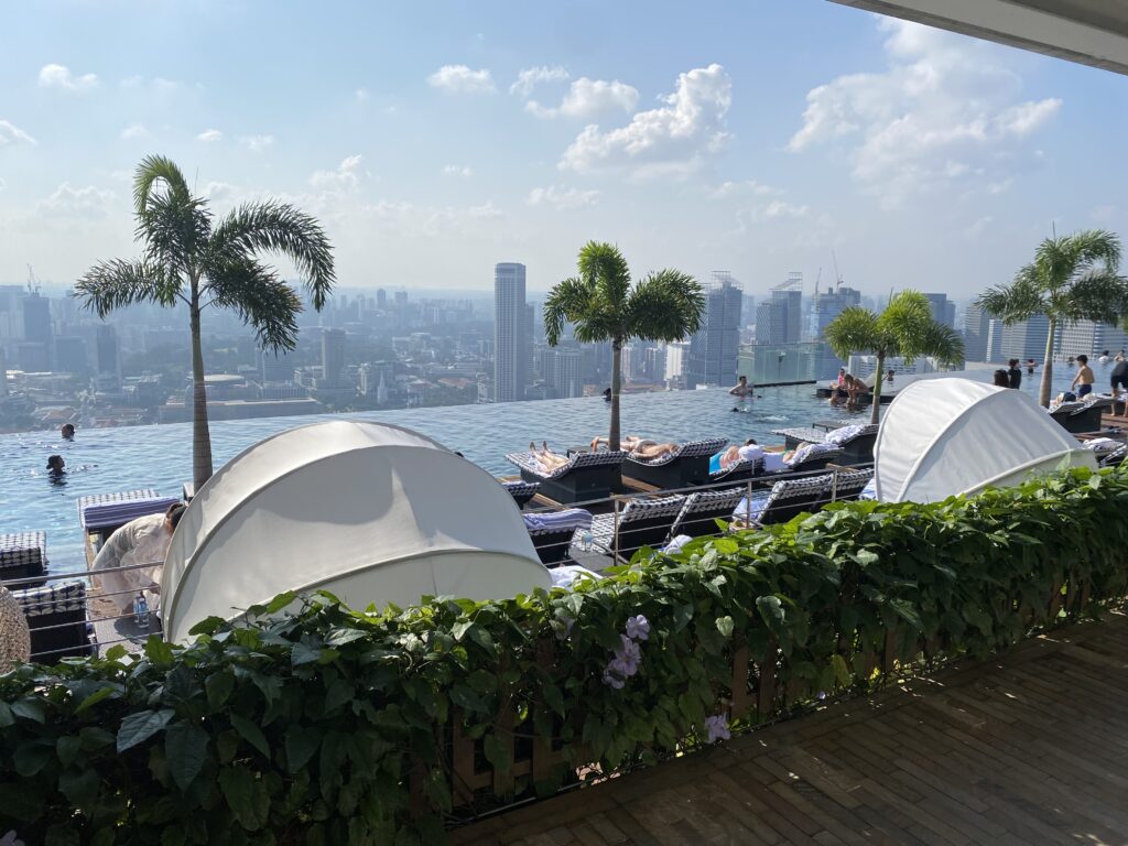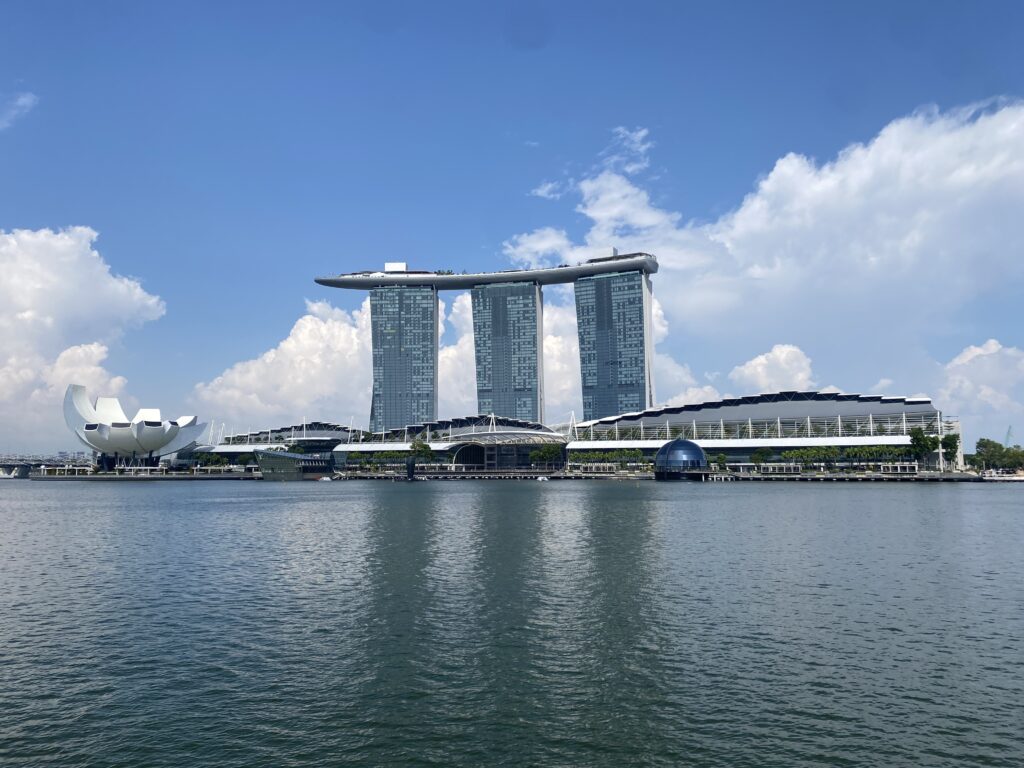 Non lontano dai Gardens by the Bay sorge proprio lei, la struttura l’edificio che rende Singapore unica nel mondo, il famoso hotel, casinò e centro commerciale costituito da tre torri e una struttura a forma di nave che si appoggia su esse, la straordinaria Marina Bay Sands.