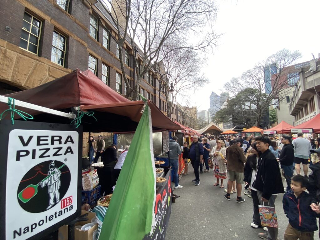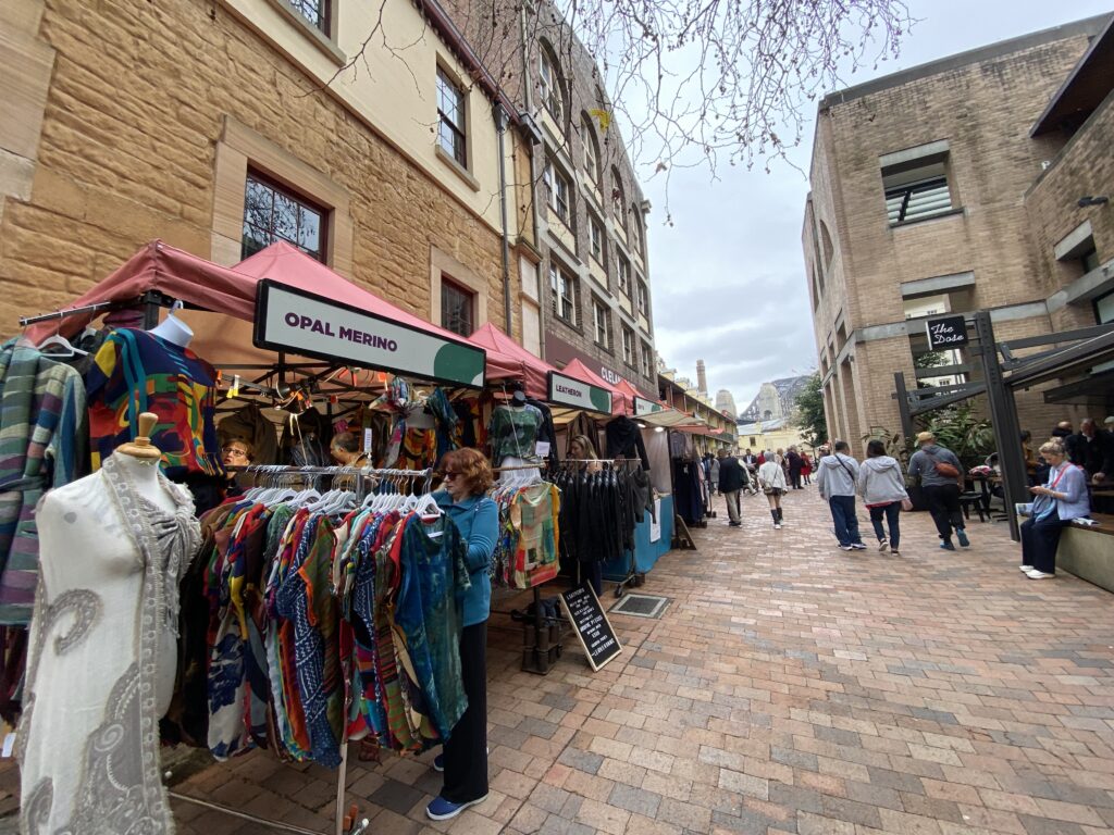 Un quartiere che mi piace molto proprio nel cbd di Sydney è The Rocks, caratteristico per il suo mercato con le sua tante bancarelle. Qui potete trovare di tutto, dal cibo tipico di ogni paese agli estratti di frutta, dalla pizza ai noodles alla paella, per non parlare dell’artigianato, oggetti in vetro, in legno, vestiti, bigiotteria, quadri e chi più ne ha più ne metta.