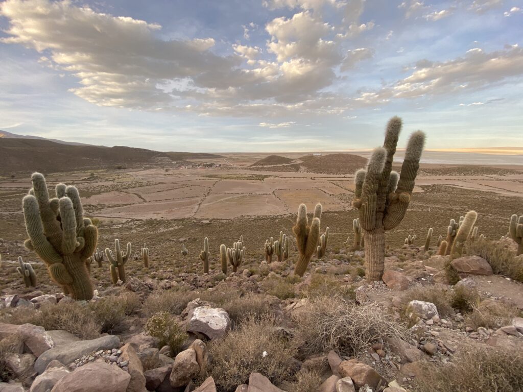 Salire fino alla cima dell’isola regala una vista a 360° sul deserto di sale, un panorama che sembra provenire da un altro pianeta, e la combinazione tra bianco accecante del salar e il verde dei cactus crea un contrasto spettacolare.. una sosta emozionante che unisce natura estrema, colori vividi e scenari mozzafiato nel cuore del Salar de Uyuni.
