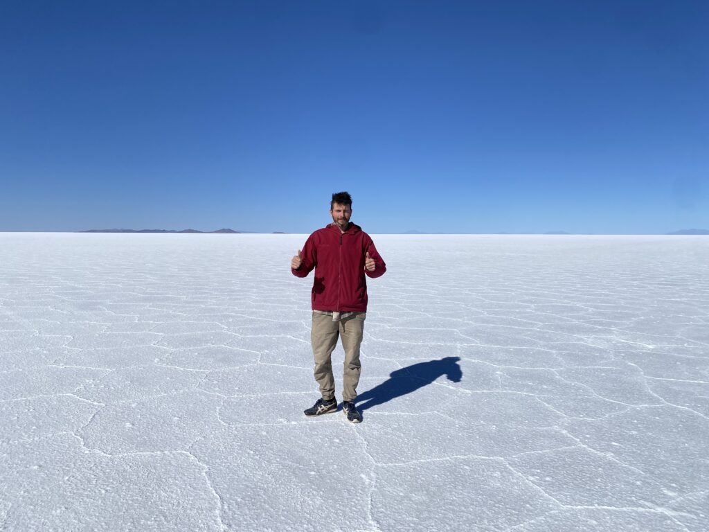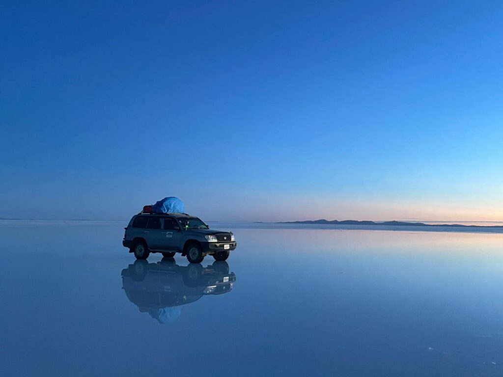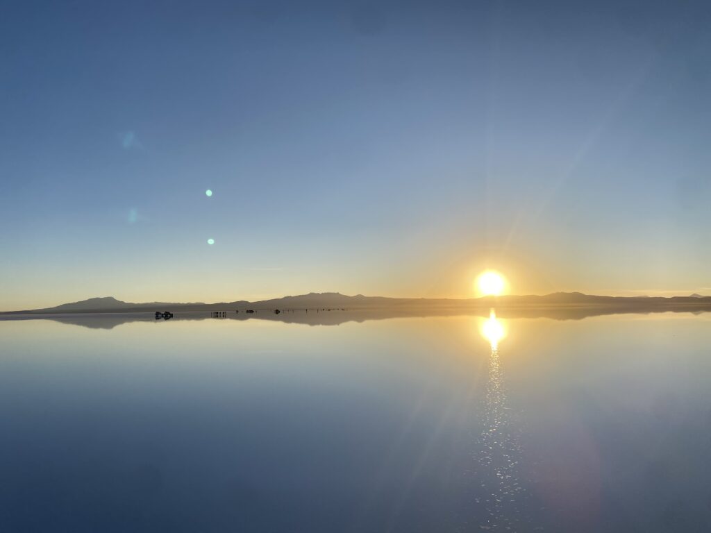 Durante la stagione secca, il salar è una superficie geometrica di sale che crea giochi visivi sorprendenti, ma è con le piogge che avviene la magia: un sottile velo d’acqua lo trasforma in uno specchio gigantesco, regalando uno degli spettacoli naturali più affascinanti del pianeta. Noi per godercela al massimo ci siamo alzati alle 4 di mattina per poter vedere il sorgere del sole e il famoso “effetto specchio“, un’esperienza davvero unica.