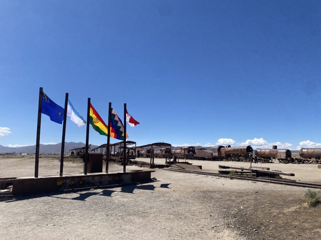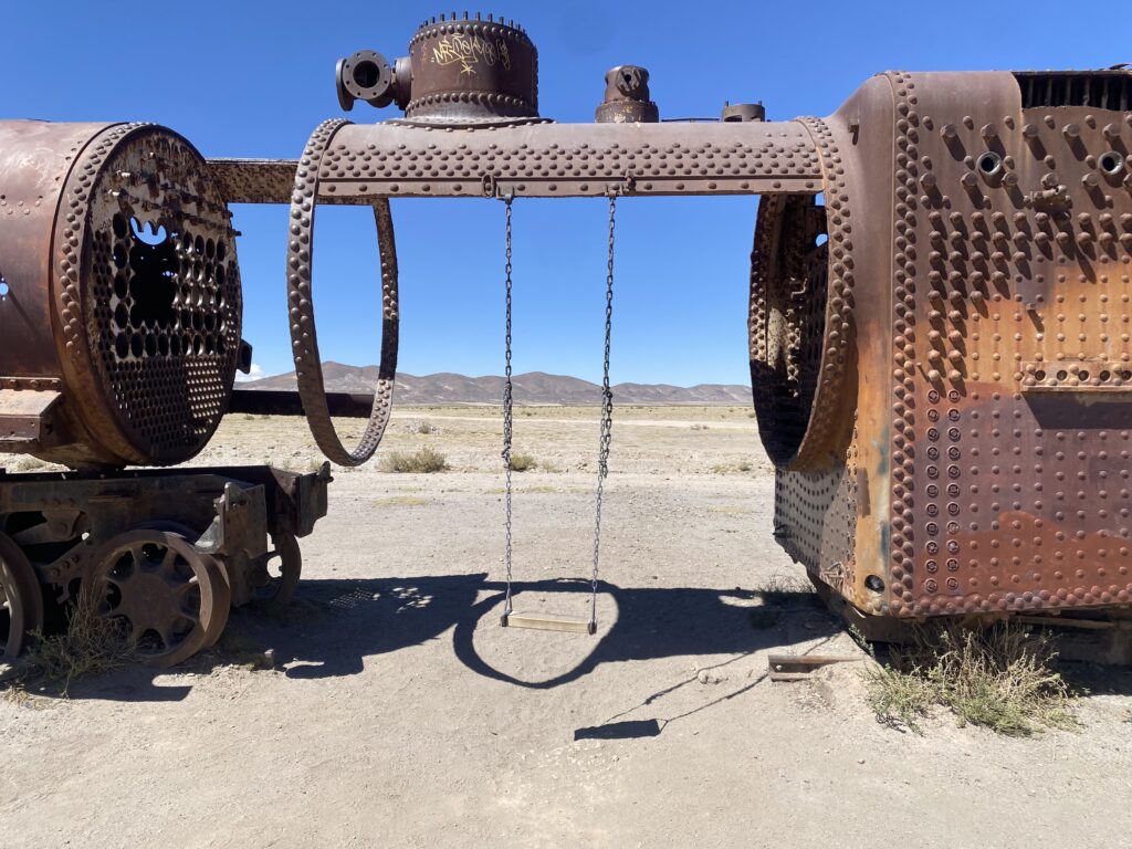 Un tempo questi treni servivano per il trasporto dei minerali lungo la rete ferroviaria boliviana, ma con il declino dell’industria mineraria furono lasciati qui, esposti al vento e al tempo.. oggi è uno dei luoghi più visitati della zona, con un’atmosfera quasi surreale tra metallo corroso, sabbia e il silenzio dell’altopiano.