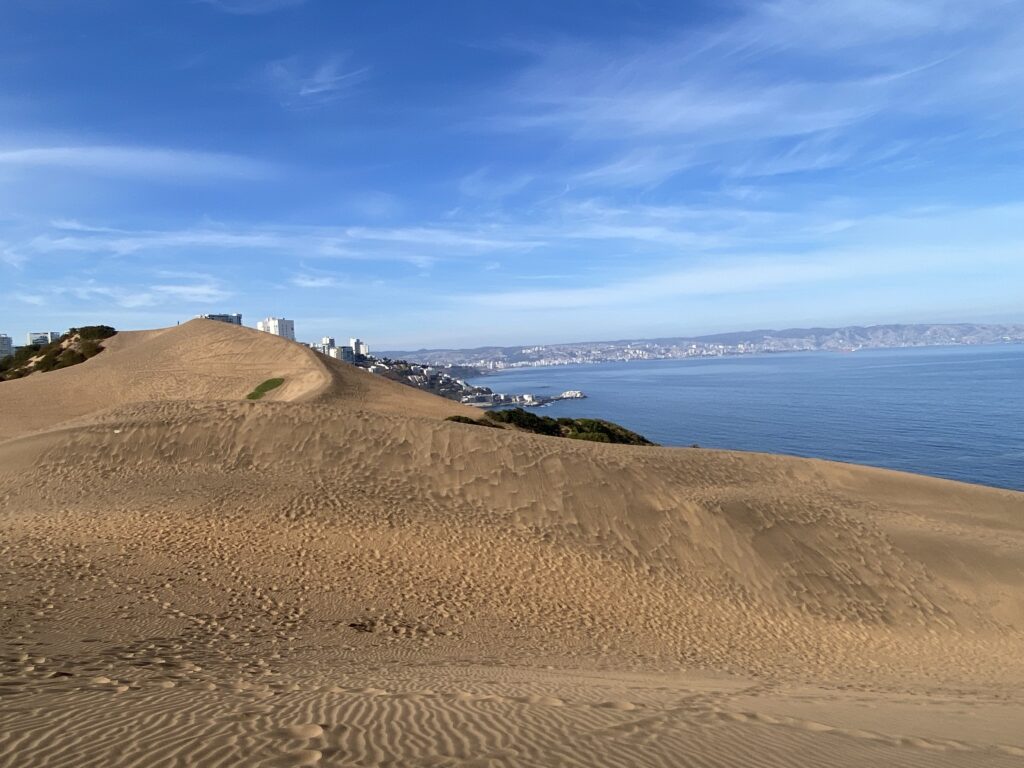Questo posto è forse quello che mi è piaciuto di più di tutta la giornata a Viña del Mar e sto parlando delle Dune de Concón. Queste sono letteralmente grandi dune di sabbia che scendono fino all’oceano, creando un contrasto unico tra deserto e mare, e rendendole decisamente uno dei paesaggi naturali più sorprendenti in questa zona.