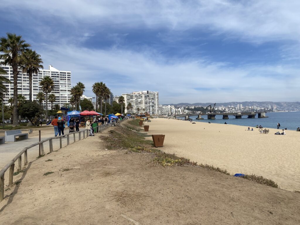 Ci spostiamo un paio di km a nord e troviamo Playa Reñaca, una delle spiagge più famose e frequentate di Viña del Mar, molto apprezzata per la sua atmosfera vivace e giovanile.. una lunga distesa di sabbia dorata circondata da bar, ristoranti e locali con vista oceano.