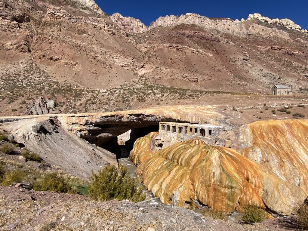 Decisamente uno dei posti che mi sono piaciuti di più durante questo tour nei dintorni di Mendoza e cioè il Puente del Inca, un ponte naturale che attraversa il fiume Las Cuevas, creatosi negli anni grazie a fenomeni naturali quali l’erosione della roccia nel tempo.