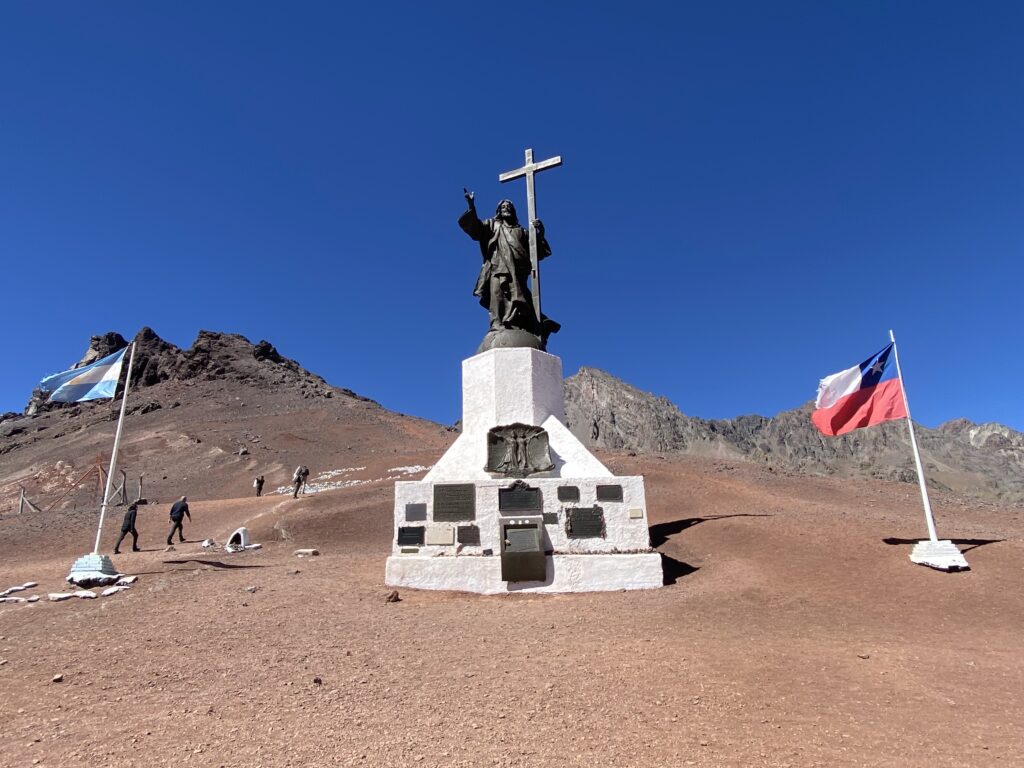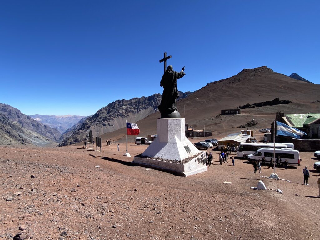 Siamo arrivati alla fine del nostro tour e ci troviamo al Cristo Redentore; mi ha stupito perché pensavo che esistesse solo a Rio de Janeiro, invece ne troviamo uno anche al confine tra Argentina e Cile.
