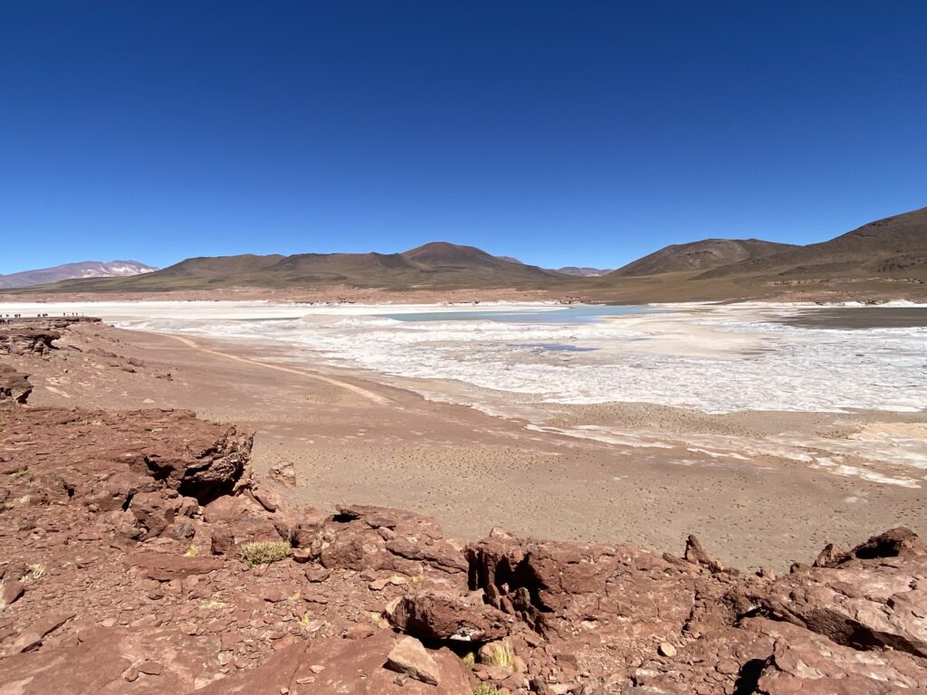Proseguiamo ed arriviamo a Piedras Rojas, uno dei paesaggi più spettacolari del deserto di Atacama, in cui le rocce rosse, modellate dal tempo, contrastano con l’azzurro intenso delle lagune e il bianco del sale, creando uno scenario davvero unico.