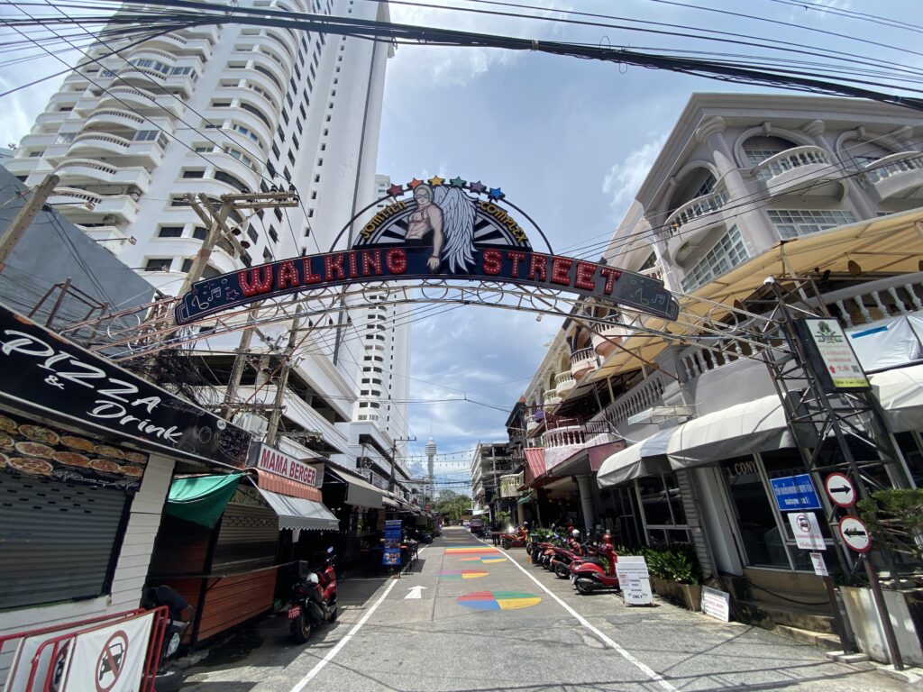 Proprio vicino a Pattaya Beach è presente la famosa Walking Street.. a parte il nome originale, questa strada è paragonabile a Khao San Road a Bangkok, in teoria dovrebbe essere la strada più trafficata di gente di tutta Pattaya, anche qui con i suoi svariati locali, ristoranti e ovviamente non possono mancare i tradizionali centri massaggi.