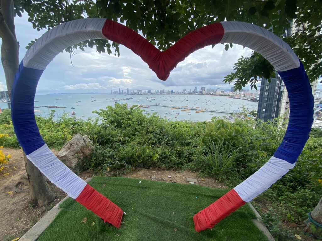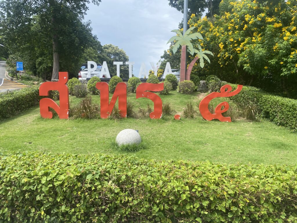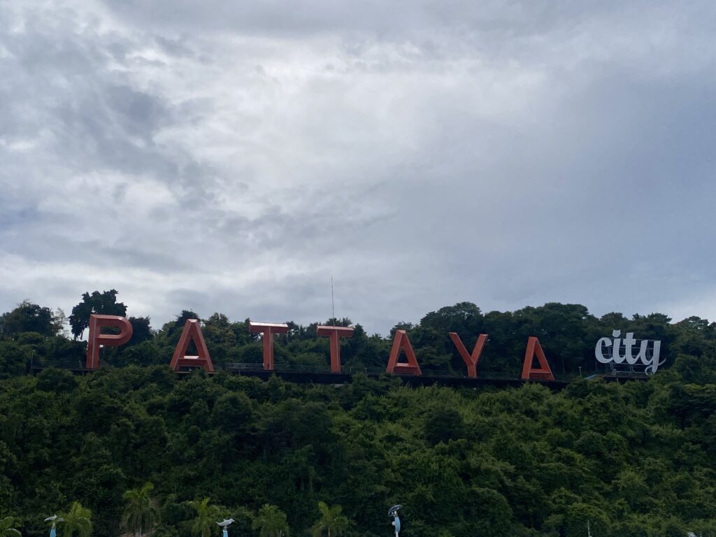 Ecco la scritta iconica della città di Pattaya, la quale sorge su una collinetta non lontana dal faro.