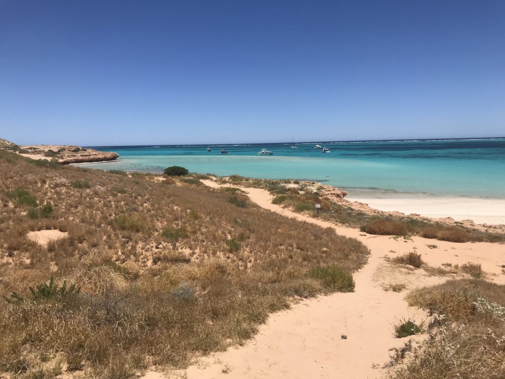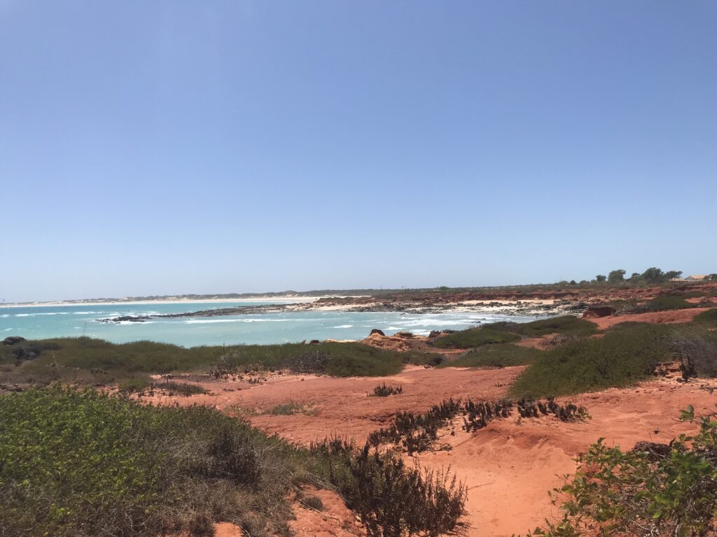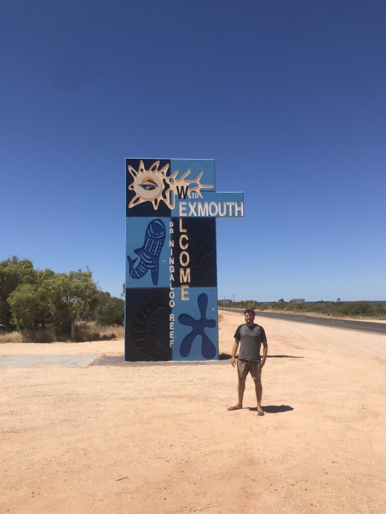 Dopo 6 ore di strada desertica arriviamo sulla costa, precisamente sulla penisola di Exmouth, un paesino in cui la temperatura è ideale sia d’estate sia d’inverno, trovandosi ad una latitudine ottimale a metà tra le due stagioni (quella secca e quella delle piogge).
