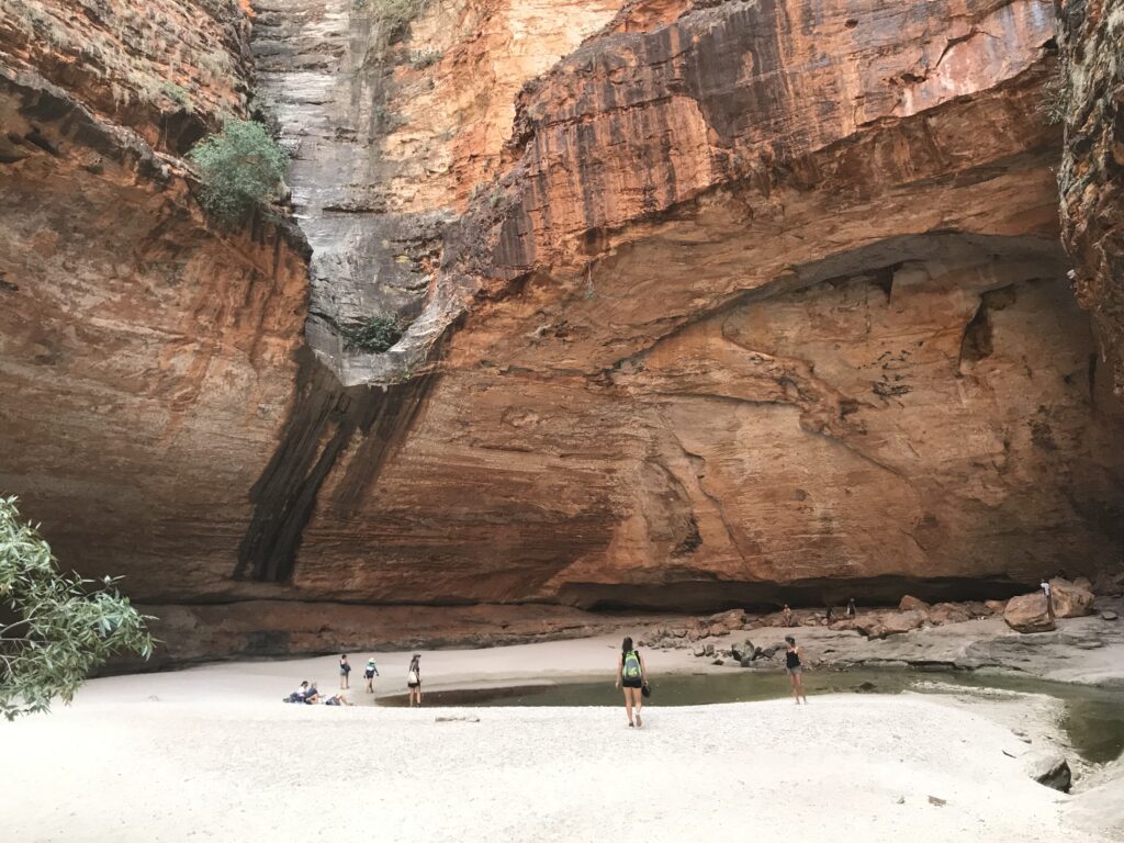 Una volta arrivati però c’è da rimanere a bocca aperta, tra i luoghi d’interesse principali sicuramente non potete perdervi il Bungle Bungle Range, questa formazione di rocce a forma di collinette a strati formatesi milioni di anni fa.. all’interno di questo Range potete trovare l’incredibile Cathedral Gorge, una gola di roccia rossa scavata dall’acqua in cui si può rilassarsi e bagnarsi per riprendersi un po’dal caldo.