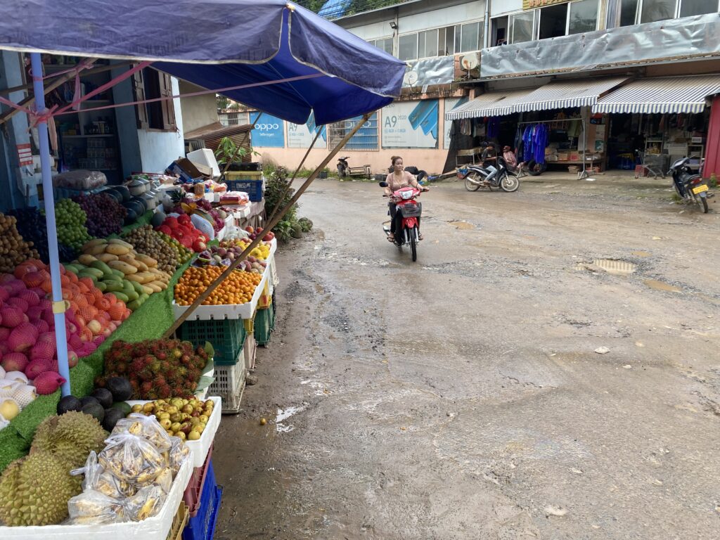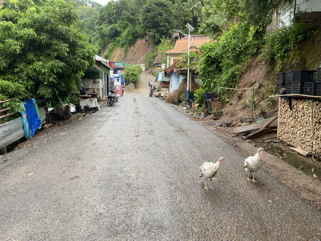 Non so se era il fatto che ero in un villaggetto sperduto, mentre in Thailandia sono stato nei posti un po’ più turistici, ma qui in Laos ho notato un po’ più di sbaraglio, a partire dalle strade abbastanza malmesse, alle case che sembra stiano per cadere, ai galli che attraversano la strada liberi.. in compenso il cibo è davvero buono e le persone sono molto amichevoli, come in Thailandia.