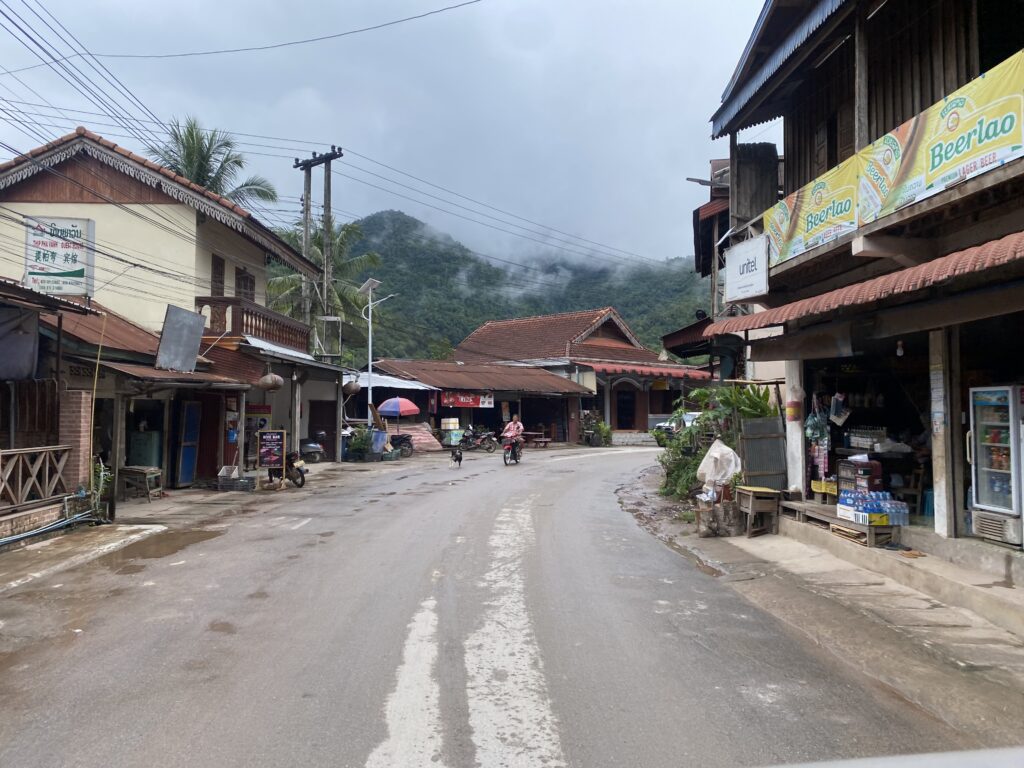 Dopo le prime 8 ore di crociera arriviamo in questo paesino, Pak Beng, letteralmente una strada con dei ristorantini e qualche negozietto.. era il primo posto che visitavo in Laos e me l’aspettavo abbastanza simile alla Thailandia, invece presentano qualche differenza.