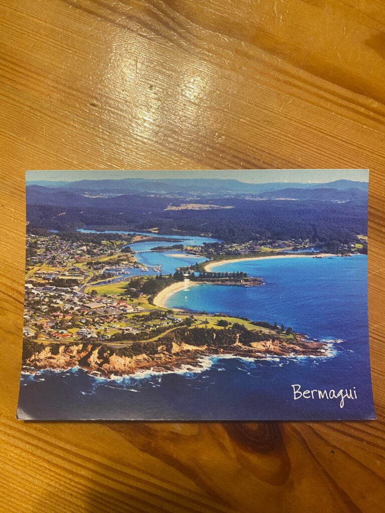 Ho voluto mettere la foto della cartolina che ho comprato perché rende benissimo l’ idea di com’è fatta Bermagui, tra i parchi e l’oceano è davvero uno dei posti più suggestivi che abbia visto in Australia.