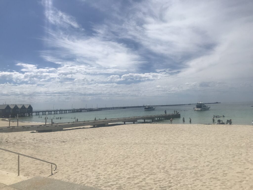 Guidiamo un paio d’ore a sud di Perth e troviamo la cittadina di Busselton, famosa per il suo jetty (molo).