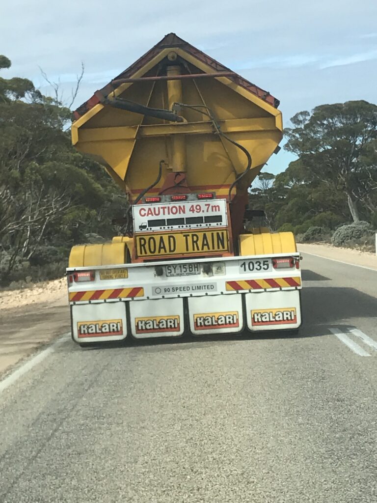 Lasciata Esperance ci prepariamo psicologicamente per ciò che ci aspetta, ovvero circa 1500km di strada quasi tutta rettilinea prima di arrivare a Ceduna, sulla quale incontreremo solo un roadhouse ogni 200km, terra rossa, autotreni con 4 rimorchi, e tanti tanti canguri.