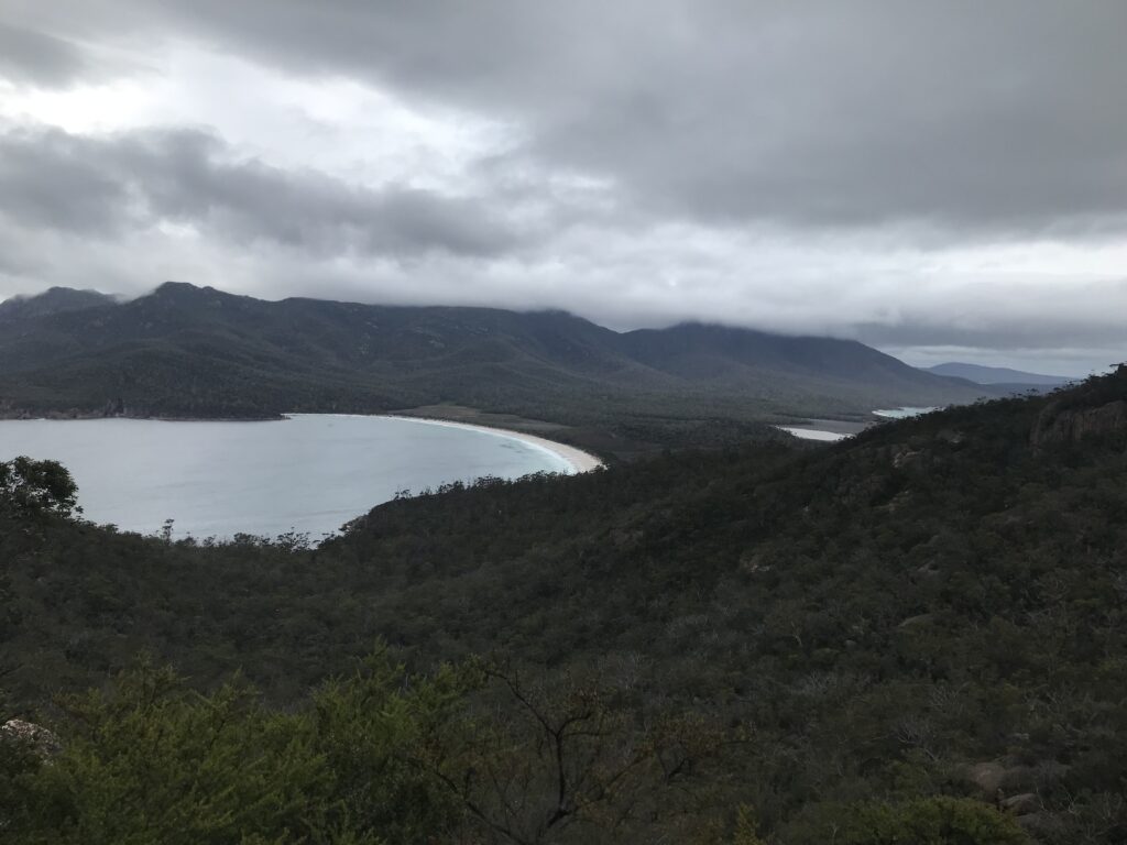 Guidiamo un paio d’ ore e arriviamo forse al National Park più iconico della Tasmania, Frecynet; questo è rinomato soprattutto per la fantastica spiaggia di Wineglass Bay, chiamata così per la sua forma a mezzaluna che quasi ricorda un calice di vino (la foto non rende tanto bene, sarei dovuto andare più in alto).