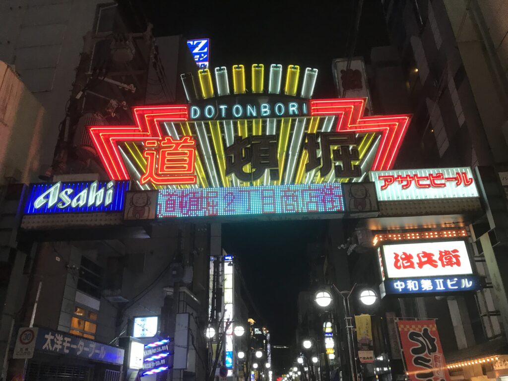 Per quanto riguarda i quartieri di Osaka, Dotombori è sicuramente il più vivo, coi suoi mille colori e insegne colorate, una miriade di ristoranti e bar tipici che offrono tutta la tradizione giapponese su un piatto, dal ramen, al sushi, alla tempura, per poi passare dal sake al matcha.