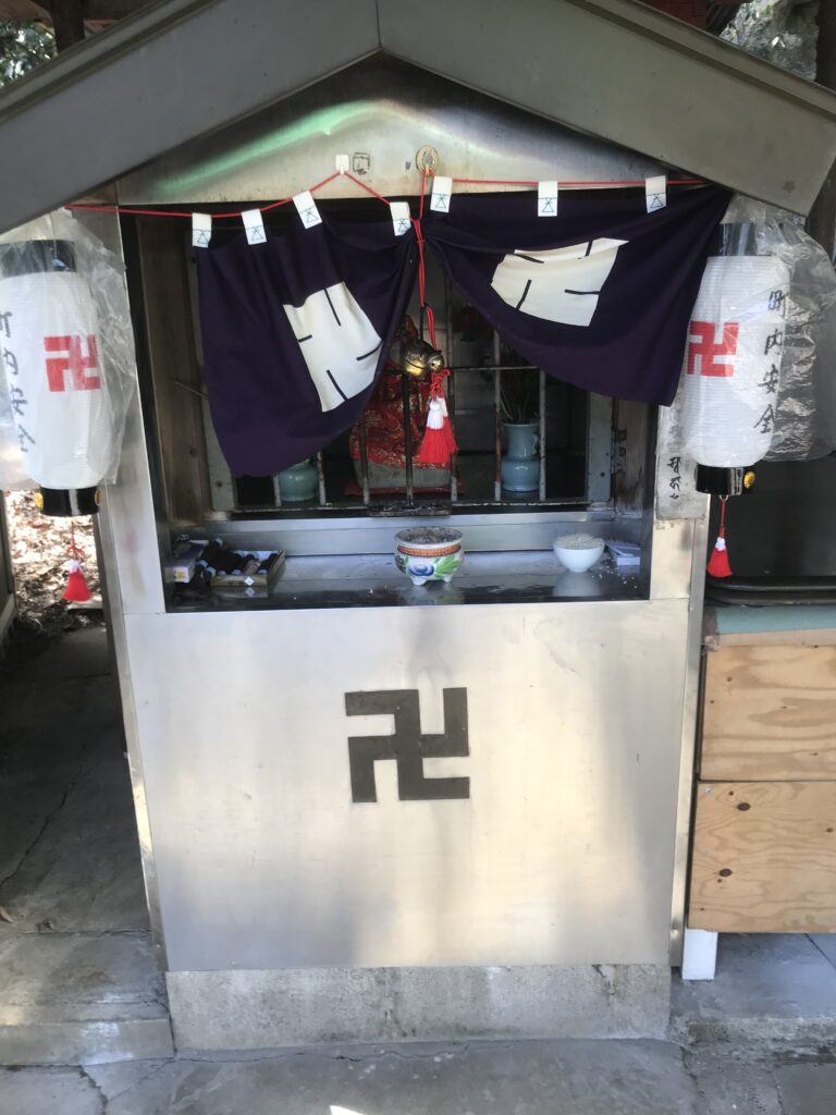Come vedete nella prima foto i templi buddisti in Giappone hanno come stemma il Manij, molto simile al noto cugino dell’ovest, questo dimostra quanto l’attribuzione di un significato è puramente personale, come in questo caso lo stesso simbolo orientale ha un significato totalmente diverso da quello occidentale.