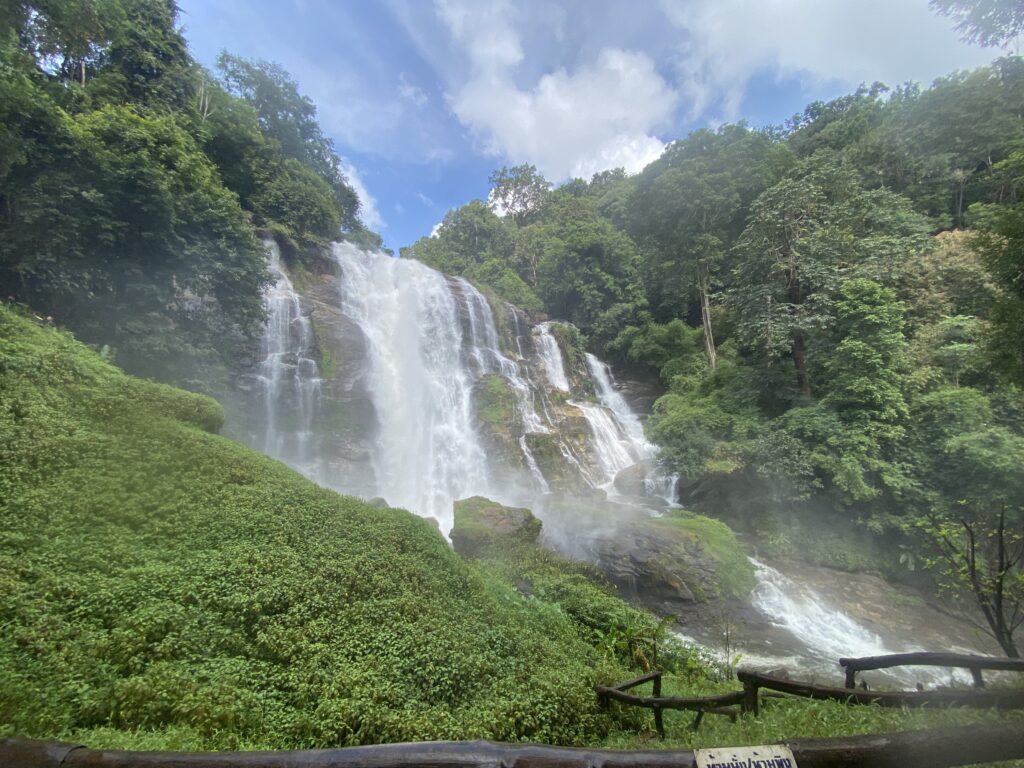 Il primo posto che ci fermiamo a visitare sono le cascate di Wachirathan, delle cascate alte circa 80 metri in mezzo alla natura che vi lasceranno a bocca aperta una volta qui.. tenetevi pronti a bagnarvi un pochino perché non appena vi avvicinate non potrete evitare la brina che si forma nell’aria, data dalla potenza con cui