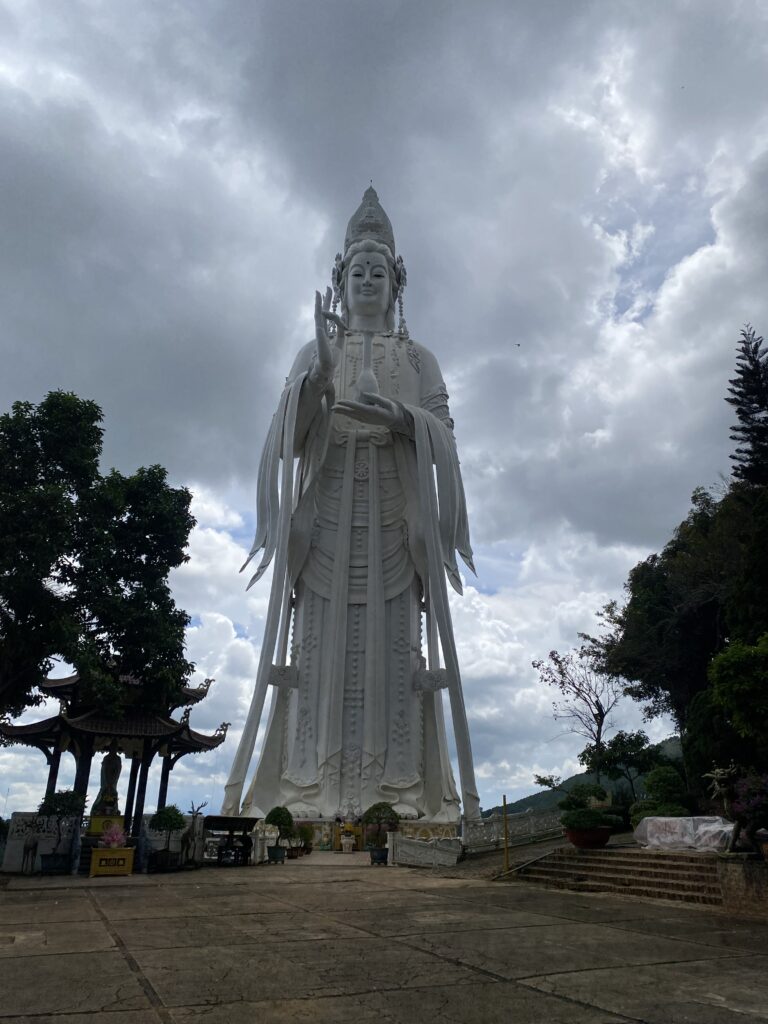 Dopo pranzo andiamo a vedere la Pagoda di Linh An, una pagoda buddhista con annessa una statua di Buddha femminile alta circa 70 metri e costruita in modo impeccabile, i dettagli anche qui sono incredibili. Si può addirittura entrare e salire sulla statua, gli interni sono molto colorati e piacevoli alla vista (foto in alto), e la vista dalla cima è stupefacente.