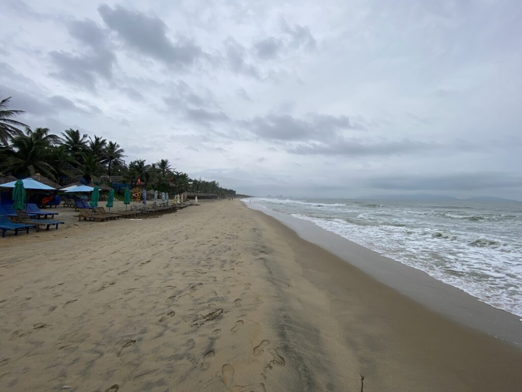 Quando sono andato io non ho trovato un bellissimo meteo, era un po’ nuvoloso e il panorama era un po’offuscato.. si può comunque vedere lo skyline di Da Nang in lontananza coi suoi tanti grattacieli che affacciano sulla spiaggia stessa.. devo dire che anche su questa spiaggia non mancano le bottiglie di plastica abbandonate in terra, c’era da aspettarselo.